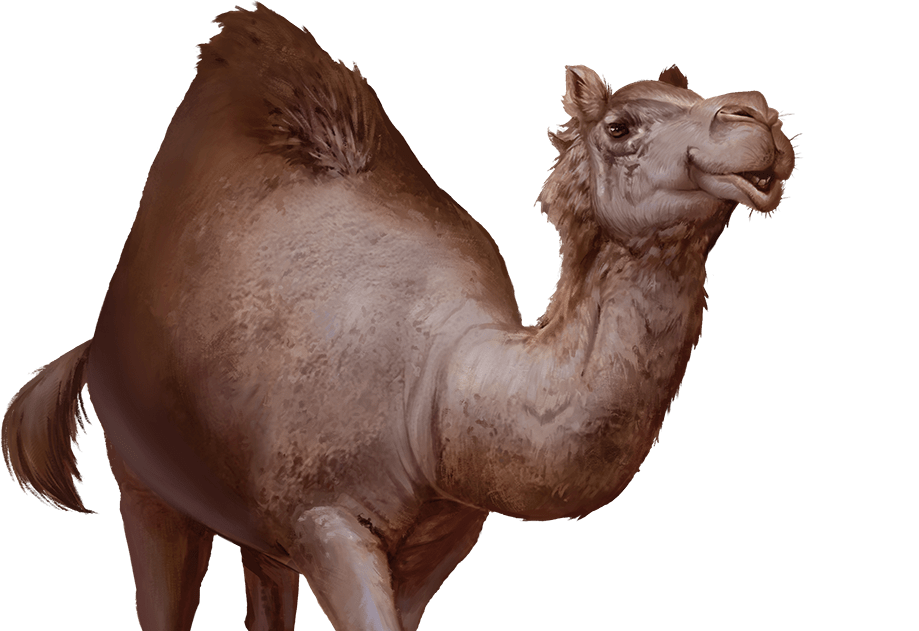 If you’re tempted to tinker with the stat block a little, you could take a move from Terry Pratchett, who claims that camels are the greatest mathematicians on Discworld. Mainly to calculate the precise trajectory to spit at someone. Of course, they’re also smart enough not to let anyone know how smart they are. If you want a camel with an Intelligence of 20 and a burning contempt for bipeds, I won’t stop you.