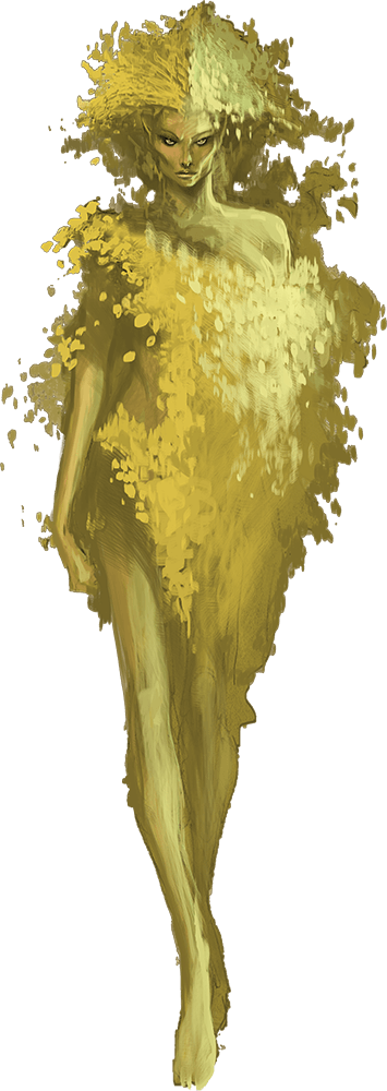 As guardians of the wild, dryads don’t seek danger or adventure. They wait with their trees, watching for incursions — whether by evil forces or the slow, impersonal malevolence of civilization. And when necessary, they strike. If a dryad gives a warning, there will not be a second one.