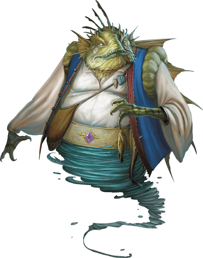 That’s the kind of vibe a Marid can bring to your table. It’s a creature that’s not really evil – it’s self-centered and arrogant, as its Chaotic Neutral alignment might suggest. If your Party can appeal to its vanity, they might be able to get what they want. Think of the CEO who surrounds themselves with yes-men, or the politician who only hears applause. That is the kind of personality you can bring to a Marid that makes dealing with one to be unlike almost any other encounter.