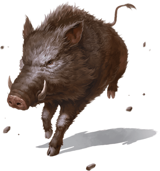 Perhaps this isn’t even a Boar at all. Long ago, a Druid, panicked and hunted, transformed themselves into a Boar to escape certain death. Their fear has fueled the willpower to stay in this form, far longer than a Druid should be able to, and that has taken a toll on their mind. Half-person, half-beast, this Boar no longer knows who it is or whom to trust. Was it a Druid pretending to be a Boar, or a Boar that thought it was a Druid? Either way, it will attack first, because neither Boar nor Druid is ever going to be vulnerable to capture again.
