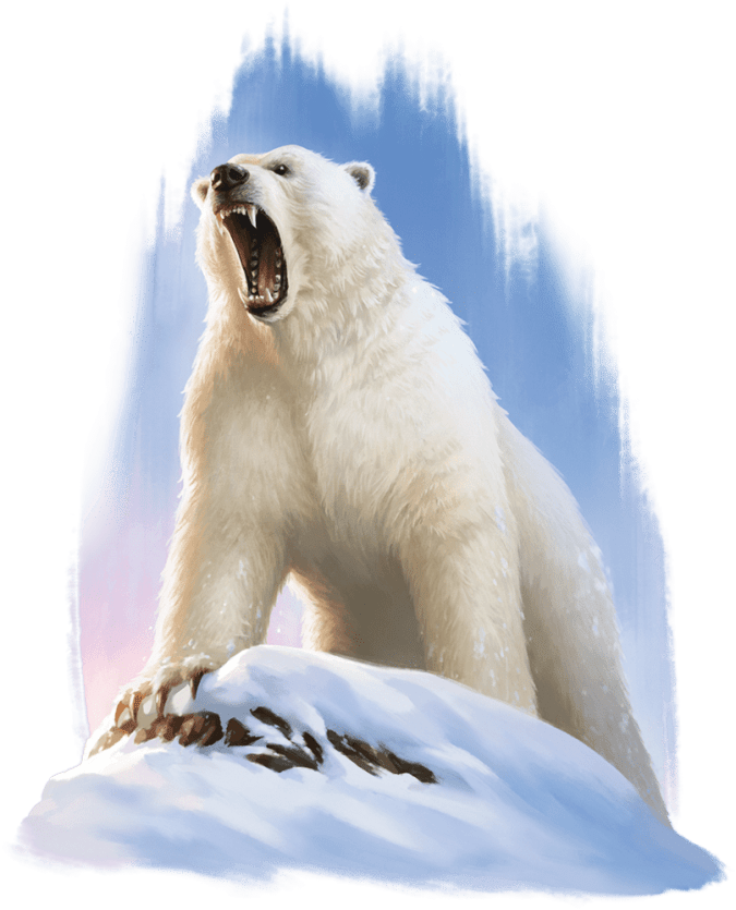For us out here in the real world, Polar Bears are so far beyond our daily experience that they might as well be mythical. With the right tone, you can lean into that. Make your players feel what the ancients must have felt when something white and silent stepped into camp and scattered blood like berries on snow.