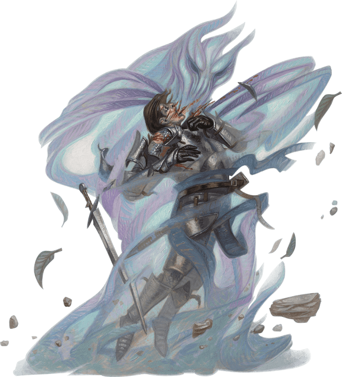 The end of this saga should be the price of summoning one of these things. What would a being like this want? It’s living wind, so it doesn’t want gold or gems like some mortal killer. Maybe it requires the breath of the caster, leaving them wheezing and weak for a time – something your Party might be able to take advantage of, if they move fast enough. Or the breath of a loved one. Is the death of your Party member worth a caster watching their own child gasp for air? How angry and vengeful is your villain?