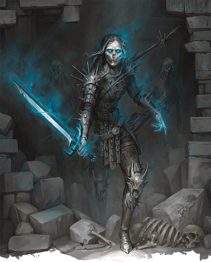 A Wight, on the other hand, is an Undead agent of death. It seeks out the living and cuts them down, venting its rage on those who have wronged it